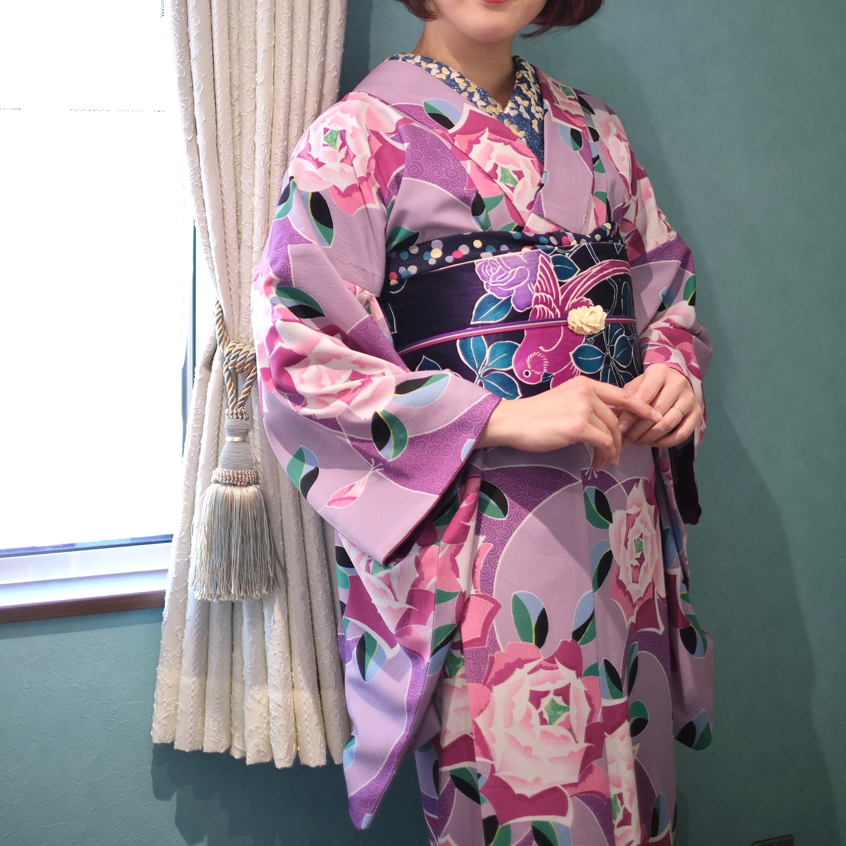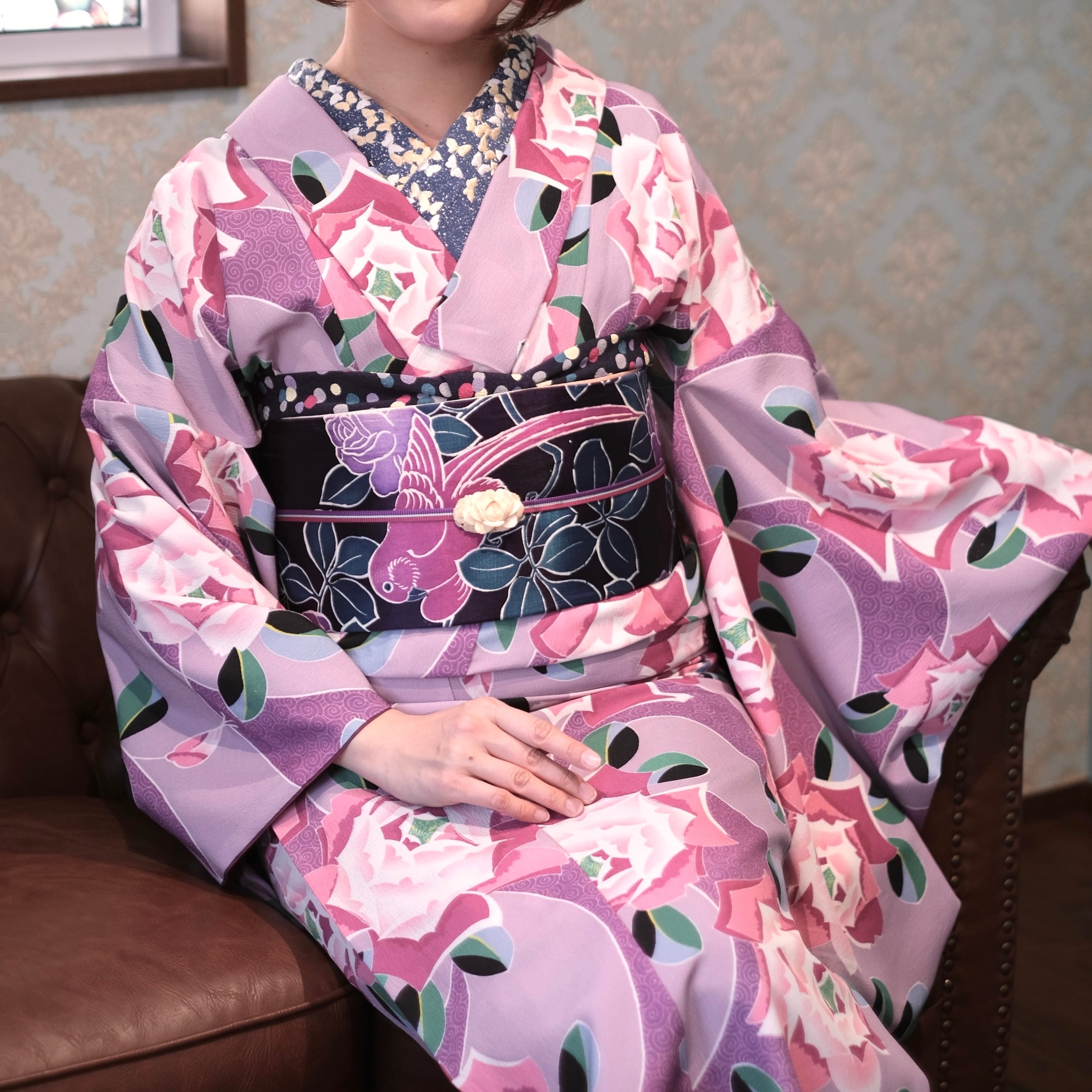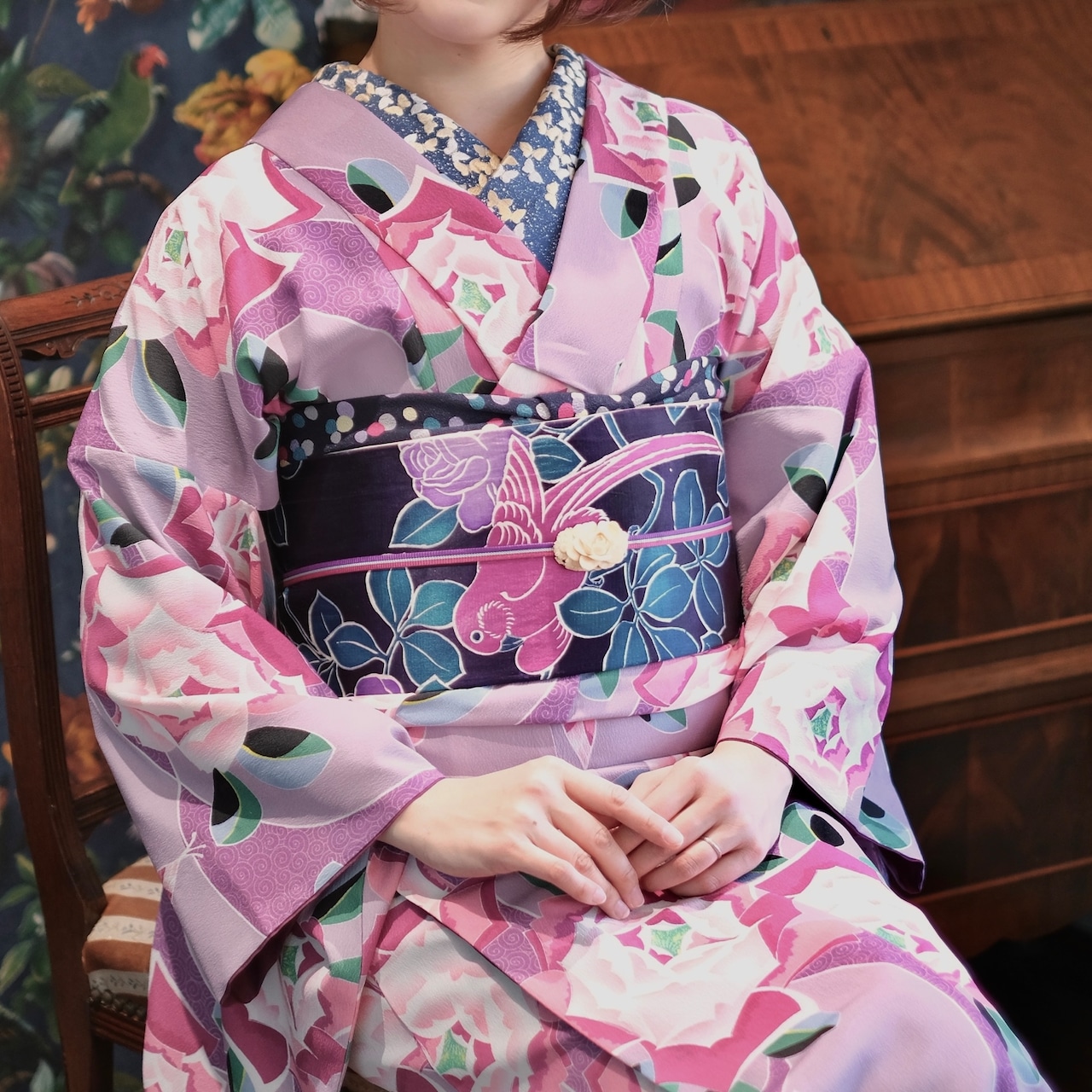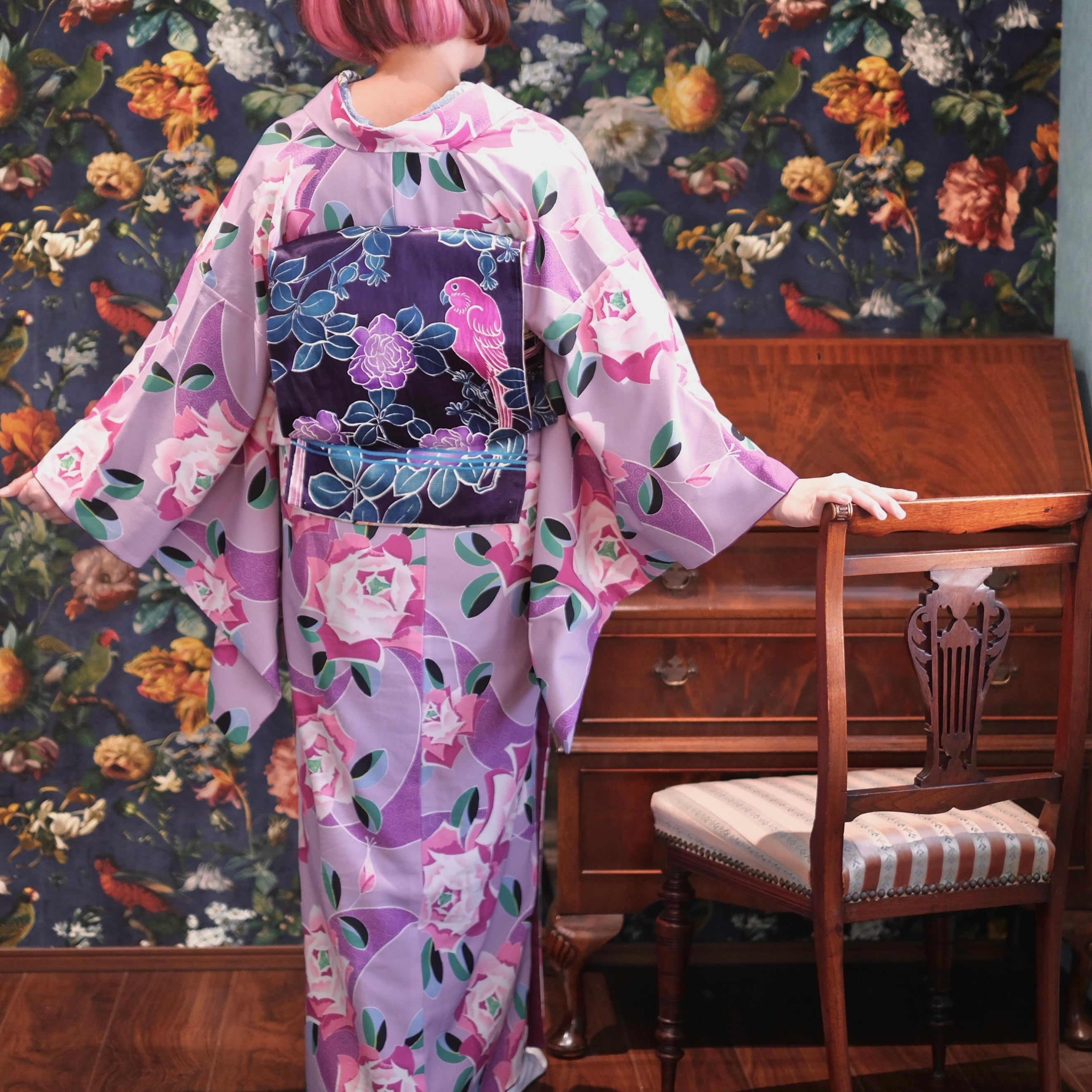 シルジェリー着尺反物『薔薇のロンド 紫』